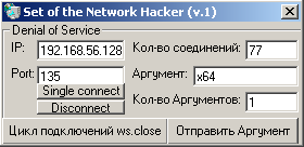 Злоумышленник вводит в соответствующие поля необходимые данные и начинает атаку «Отказ в обслуживании» на указанный сервер.