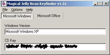Данная программа показывает активационный ключ к операционной системе "Microsoft Windows XP" и к "Microsoft Office 2003", позволяет изменить этот ключ, распечатать или сохранить. Интерфейс программы имеет следующий вид: