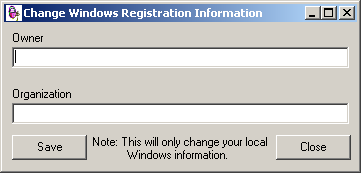 Программа позволяет изменить зарегистрированного владельца Windows и наименование организации: