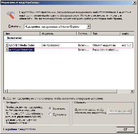Троянец отображается в диалоге надстроек Internet Explorer: