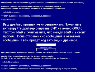 Троянец удаляет ключ реестра отвечающий за безопасный режим загрузки операционной системы. После этого создает окно, которое распахивает на весь экран и форсированно помещает поверх всех окон и перехватывает фокус:
