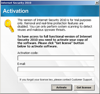 - При нажатии на кнопку "Fix my computer" отображается окно ввода ключа активации лже-антивирусной программы: