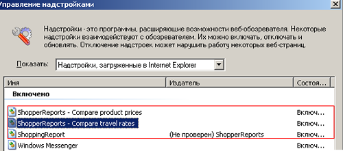 После активации программа устанавливает компоненты панели инструментов "Shopper Reports" для Internet Explorer: