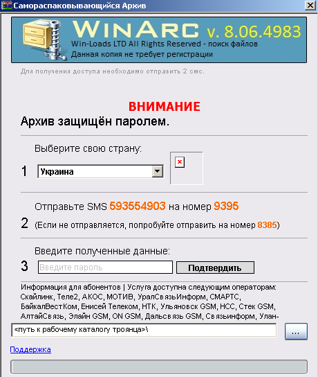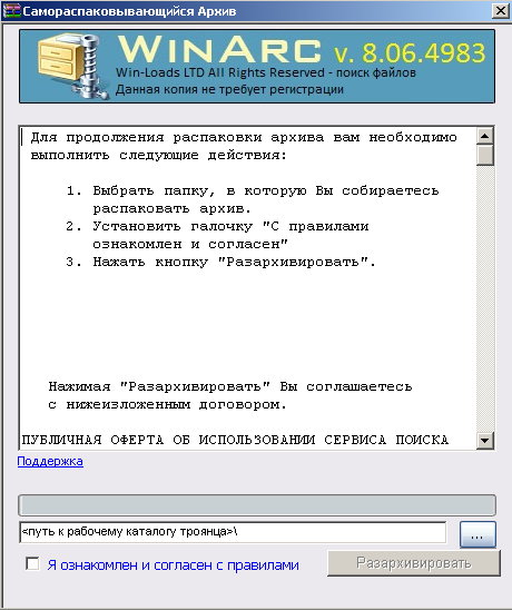 Загруженные файлы сохраняются в каталоге "%Temporary Internet Files%" текущего пользователя. Загруженные файлы вредоносного кода не содержат и используются в процессе отображения показанных ниже окон.