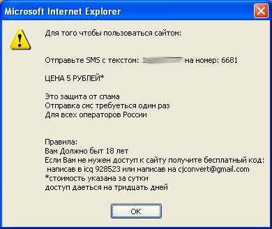 При помощи данного скрипта, троянец блокирует работу браузера, путем циклического отображения сообщения, в котором пользователю необходимо ввести секретную комбинацию цифр:
