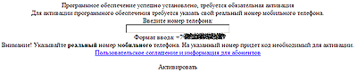 Если пользователь соглашается, ему отображается имитация проверки некоторых файлов на его компьютере и предлагается ввести номер мобильного телефона для получения кода активации.