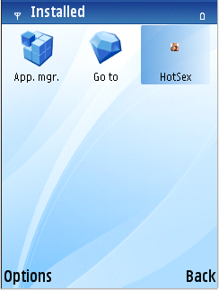Мидлет устанавливается в телефоне под именем "lite" и отображается как "HotSex":
