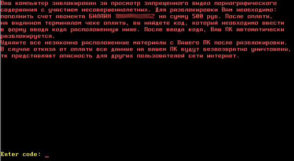 То троянец восстанавливает оригинальную главную загрузочную запись. В противном случает троянец отображает следующее сообщение: