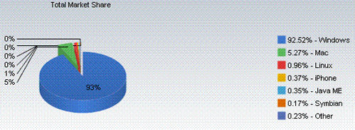 Apple, напротив, продолжает укреплять позиции: за месяц рыночная доля Mac OS X увеличилась с 5,1 до 5,3%. Впрочем, аналитики не могут сказать, как долго продлится этот рост, хотя потенциал для него есть. Доля операционных ПК-систем на основе ядра Linux продолжает колебаться возле 1%.