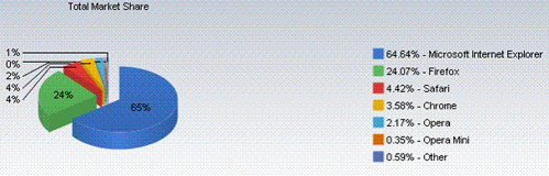 В сегменте браузеров Internet Explorer уступает конкурентам – теперь он занимает 64,64% рынка (сентябрь – 65,71%, август – 66,97%). Firefox, наоборот, демонстрирует увеличение популярности – 24,07% (сентябрь – 23,75%, август – 22,98%) пользователей Сети осуществляют серфинг через "огненную лису". Положительная тенденция относится также к Chrome и Safari – 3,58% (сентябрь – 3,17%, август – 2,84%) и 4,42% (сентябрь – 4,24%, август – 4,07%) соответственно.