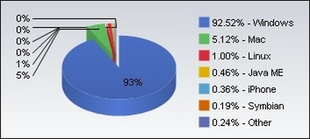 Согласно представленным данным, рыночная доля Windows осталась прежней — 92,5%, тогда как Apple Mac OS X, впервые с февраля 2009 года потерявшая внушительные 0,16%, охватила в последнем месяце осени 5,1% компьютеров.
