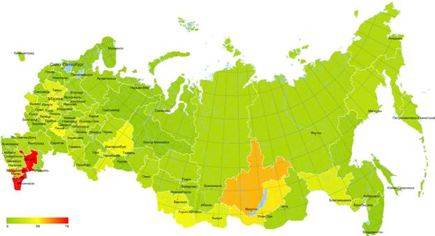 По общему количеству предложений и рекомендаций использования нелицензионного ПО среди городов-милионников наиболее высокими уровнями пиратства отличаются Самара (41%), Нижний Новгород (38% от всех точек в городе), Москва (35%), Челябинск (35%).