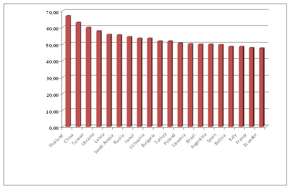 Список наиболее инфицированных стран возглавили Таиланд, Китай и Тайвань с показателем инфицированности в пределах 60-70%. Россия в этом рейтинге находится на 7-ом месте (рейтинг составлен на основе данных, полученных благодаря Panda ActiveScan).