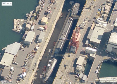 Однако на сей раз военный секрет раскрыла Microsoft, точнее не сама компания, а ее картографический интернет-сервис Virtual Earth, который запечатлел изображение разрабатываемой военной баллистической подводной лодки класса Охайо.