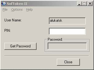 Хотя и на обычных паролях также можно реализовать достаточно эффективную систему. Например, SofToken (рис.1). На экране мы видим, что пользователю дается всего две кнопки «Get Password» и «Close». Вторая закрывает приложение, а первая генерит одноразовый пароль, который даже не надо специально копировать в буфер обмена – все делает система. Вам достаточно ввести созданный пароль в какое-нибудь приложение и пройти процесс аутентификации.