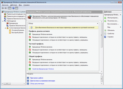 Рис. 2 Брандмауэр Windows в режиме повышенной безопасности (Щелкните изображение, чтобы уменьшить его)
